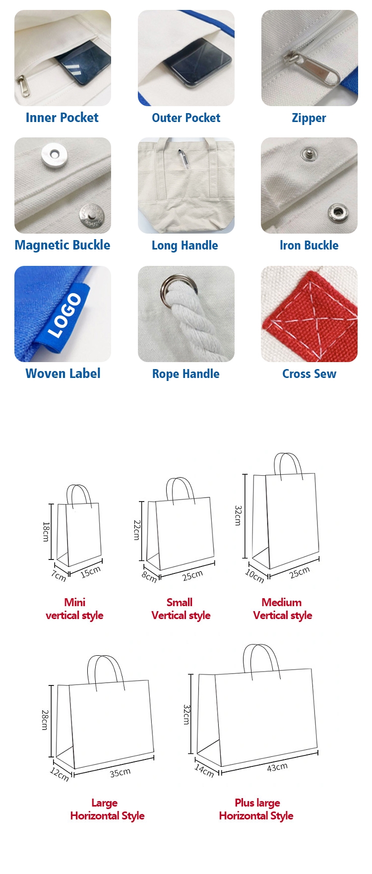| Features | Sturdy & Durable/Breathable Fabric/Washable/Lightweight/Tear-resistant/Reusable & Eco-friendly/Reinforced Stitching/Spacious Capacity/Classic & Versatile |